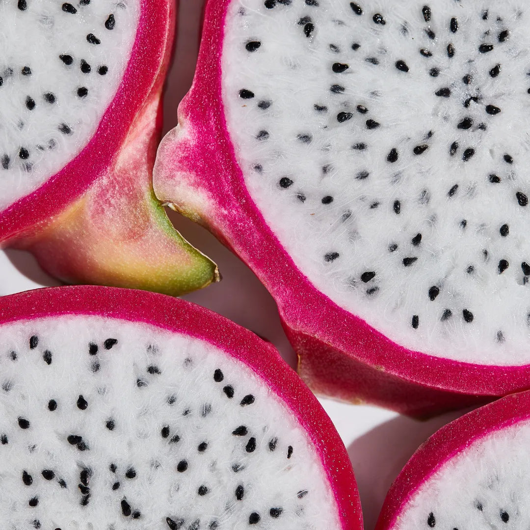 DRGN Juice is a concentrated blend of ripe fruit and soft botanicals. Pressed dragon fruit brings a burst of juicy brightness, smoothed by airy lotus petals and cool greens. A silky trail of musk and blond woods grounds the scent in quiet freshness.